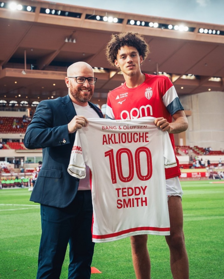 9月21日讯 法甲第5轮,摩纳哥主场作战 对阵梅斯。赛前,阿克利乌舍领取了百场纪念运动活动 服 。