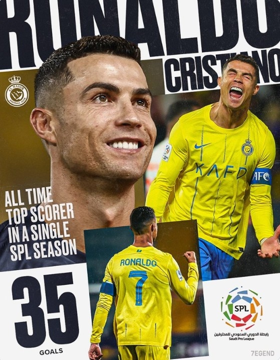 在2023-24赛季,C罗以35球排在射手榜榜首,并在接下来的赛季中再进25球,成功蝉联第一名 金靴。