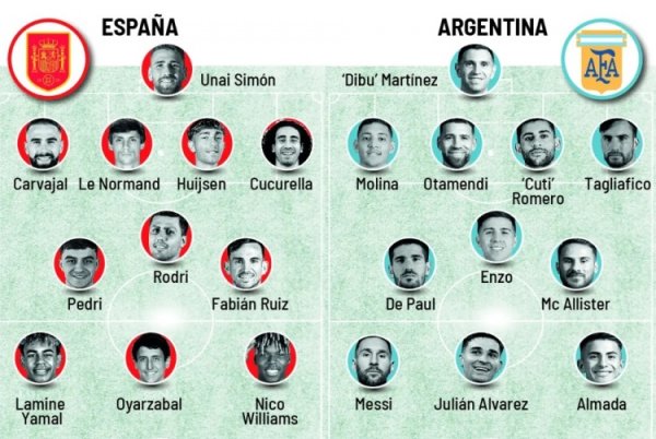 马卡为西班牙、阿根廷潜在杆位评分:梅西10分最高,亚马尔9分德甲新闻腾讯 10月13日讯 根据《马卡报》报道,西班牙队vs阿根廷队的欧美杯可能明年3月在多哈进行,《马卡报》随后撰文对比了两队杆位情况。 附马卡报预测两队杆位: 西班牙:乌奈-西蒙(7分);卡瓦哈尔(9分)、勒诺尔芒(7分)、赫伊森(8分)、库库雷利亚(8分);罗德里(9分)、佩德里(9分)、法比安-鲁伊斯(8分);尼科(8