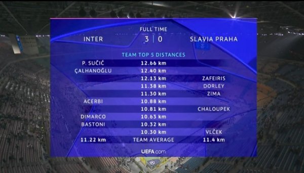 国米球员本场移动距离 :苏西奇12.66km最多,恰尔汗奥卢次席德甲新闻腾讯 10月1日讯 在本轮欧冠,国米3-0击败布拉格斯拉维亚。 本场赛事 国米方面移动距离 最多的是苏西奇的12.66km德甲新闻腾讯,其次为恰尔汗奥卢12.40km,之后分别是阿切尔比10.88km,迪马尔科10.63km,巴斯托尼10.32km。