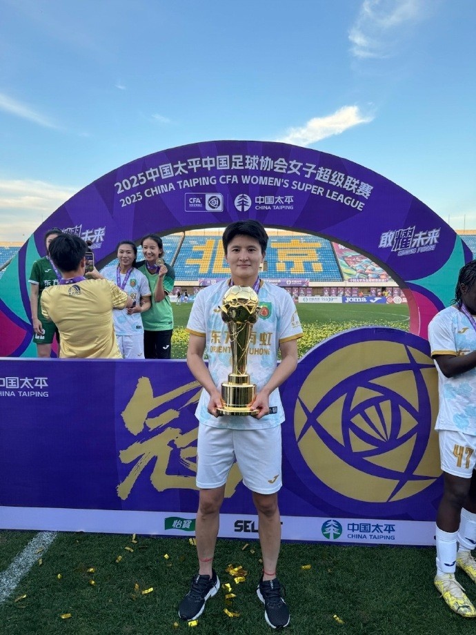 9月29日讯 北京女足夺得女子古代足球 超级职业联赛 第一名 ,老将王珊珊更新社交媒体庆祝。