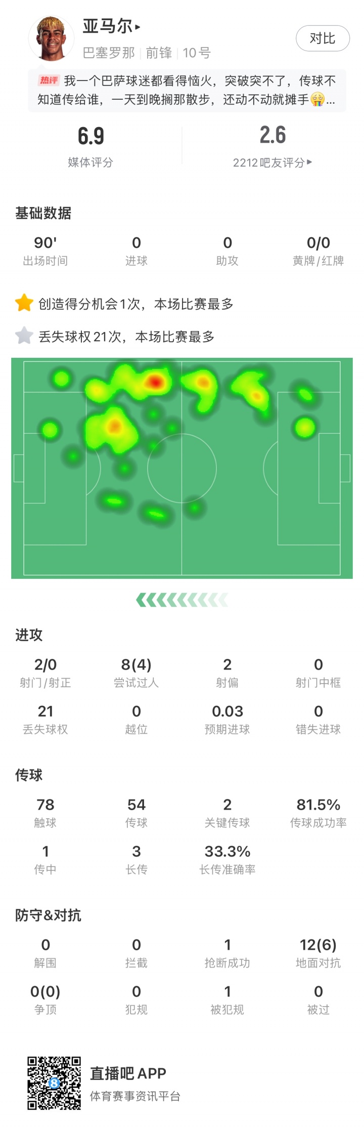 亚马尔本场数据: