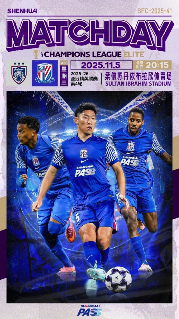 亚冠精英职业联赛 第4轮 柔佛新山vs上海申花 📅 11月5日周三 20:15直播足球直播网 🏆 2025/26 亚冠精英职业联赛 第4轮 🆚 柔佛新山 vs 上海申花 📅 11月5日 周三 20:15 🏟 柔佛苏丹依布拉欣运动场 📺 咪咕视频、爱奇艺 直播足球直播网