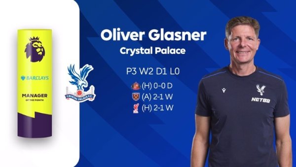 九月不败!水晶宫主帅格拉斯纳当选英超月最佳主帅,生涯首次获奖英超免费直播在线直播 10月10日讯 奥地利籍主帅奥利弗-格拉斯纳九月率水晶宫保持不败,当选英超月度最佳主帅,生涯首获该奖项。 格拉斯纳执掌的水晶宫在九月保持不败,将各项赛事连续不败记录 扩大到19场。球队月初与桑德兰0-0战平,随后客场应战 2-1力克西汉姆联,并在月末戏剧性致胜球 利物浦,成为当月英超唯一保持不败的球队。 5