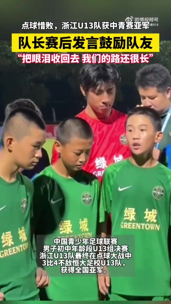 浙江U13领队 催泪发言:把眼泪收回去,未来我们的路还很长英超在线观看 9月15日讯 9月14日,第四届中国青少年古代足球 职业联赛 男子初中年龄段U13组总决赛 第二局 赛事 ,浙江U13队最终在罚球决胜 中3-4不敌恒大足校U13队,获得全国第二名 。据杭州交通经济广播报道,赛后,球队领队 发言鼓励队友: “把眼泪收回去,我们的路还长!” 球队领队 发言说道:“大家有流泪的,有低头