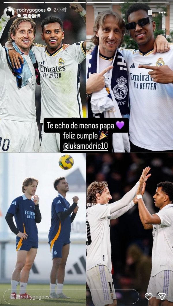 罗德里戈社媒晒多张合影为莫德里奇庆生:想你了,爸爸英超20242025积分榜最新排名 9月9日讯 莫德里奇迎来40岁生日,前皇马队友罗德里戈在个人社媒晒出多张两人昔日合影为其庆生。 罗德里戈社媒配文写道:“我想你了英超20242025积分榜最新排名,爸爸,祝你生日快乐!”
