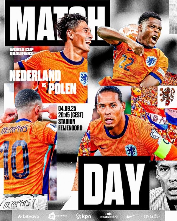 荷兰队发布世预赛海报:范迪克、赖因德斯、邓弗里斯、德佩出镜英超超积分榜 9月4日讯 北京时间明天凌晨,荷兰将在世预赛中对阵波兰。 荷兰队官方社媒发布了为此役制作的海报英超超积分榜,赖因德斯、邓弗里斯、德佩、范迪克出镜。