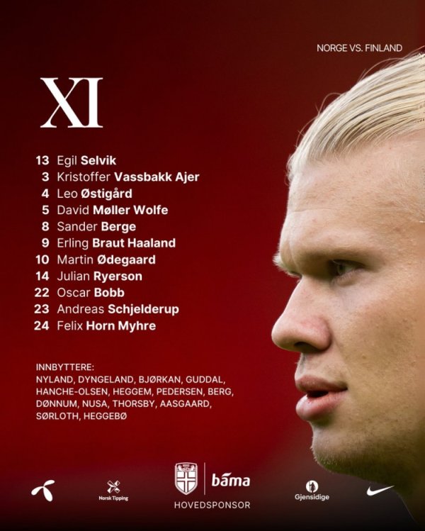 挪威友情 赛杆位:哈兰德、厄德高、奥斯卡-鲍勃出战英超免费直播(无插件) 9月4日讯 北京时间明天0点,友情 赛挪威vs芬兰,挪威此役杆位已经公布,哈兰德、厄德高出战。 挪威杆位:13-塞尔维克、3-阿耶尔、4-厄斯蒂高、5-戴维-沃尔费、8-桑德-博格、9-哈兰德、10-厄德高、14-莱尔森、22-奥斯卡-鲍勃、23-施耶尔德鲁普、24-米赫埃 后备 :尼兰德、丁格兰、比约坎