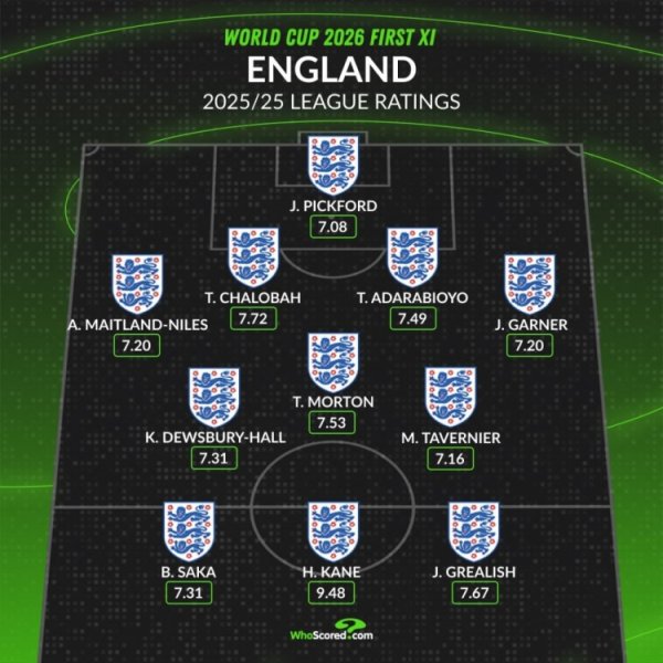 whoscored英格兰球员本赛季评分最佳阵:前场凯恩&萨卡&格拉利什英格兰足球超级联赛排名 9月3日讯 五大职业联赛 迎来短暂休赛,whoscored也统计了本赛季的英格兰球员职业联赛 评分最高阵形 ,凯恩领衔。 whoscored英格兰球员本赛季职业联赛 评分最佳阵: 守门员:皮克福德(埃弗顿,7.08分) 后场球员:奈尔斯(里昂,7.20分)、查洛巴(切尔西,7.72分)、阿达拉比奥尤(切尔