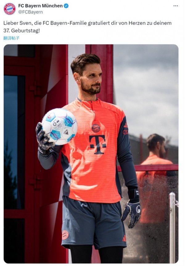 世俱杯在线直播 8月3日讯 今天是拜仁守门员乌尔赖希的37岁生日,拜仁官方为他送上祝福。 拜仁官方社媒晒出乌尔赖希的照片,配文:“亲爱的斯文,拜仁慕尼黑大家庭衷心为你送上37岁生日的美好祝福!” 乌尔赖希2015年以350万欧转会费从斯图加特加盟拜仁,2020年免签加盟汉堡,2021年免签回归拜仁世俱杯在线直播,职业生涯至今为拜