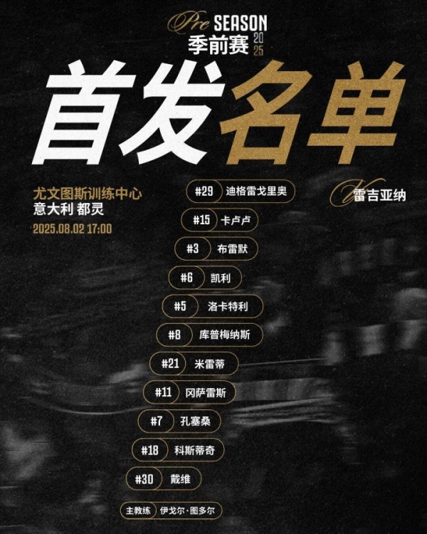 尤文vs雷吉亚纳杆位:洛卡特利领衔,戴维迎首秀,布雷默杆位出战